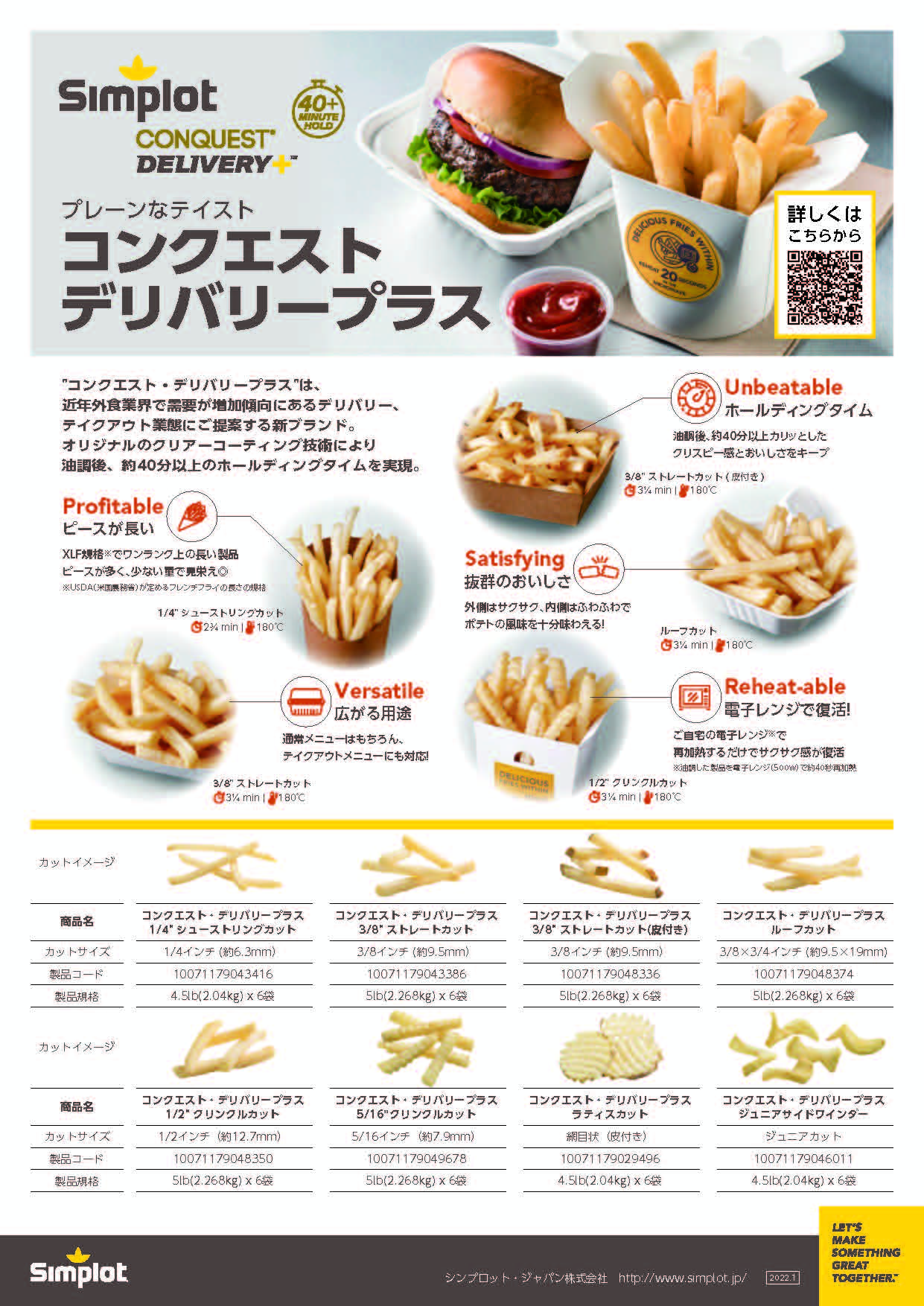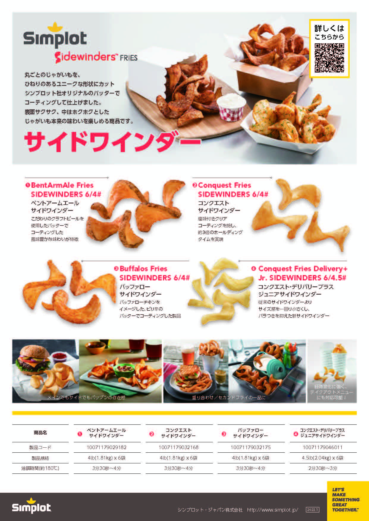 丸ごとのじゃがいもを、ひねりのあるユニークな形状にカットしたシンプロットだけのオリジナルのスペシャル商品。様々なテイストをご用意、表面サクサク、中はホクホクとしたじゃがいも本来の味わいを楽しめます。