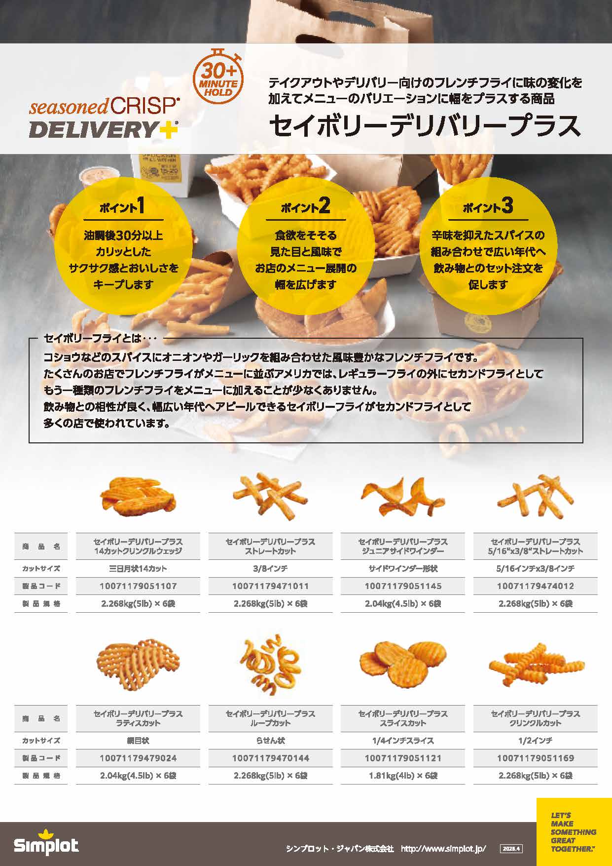 “セイボリー・デリバリープラス”は、豊かな風味と約30分以上のホールディングタイムを実現したテイクアウト、セカンドフライに最適ブランド。