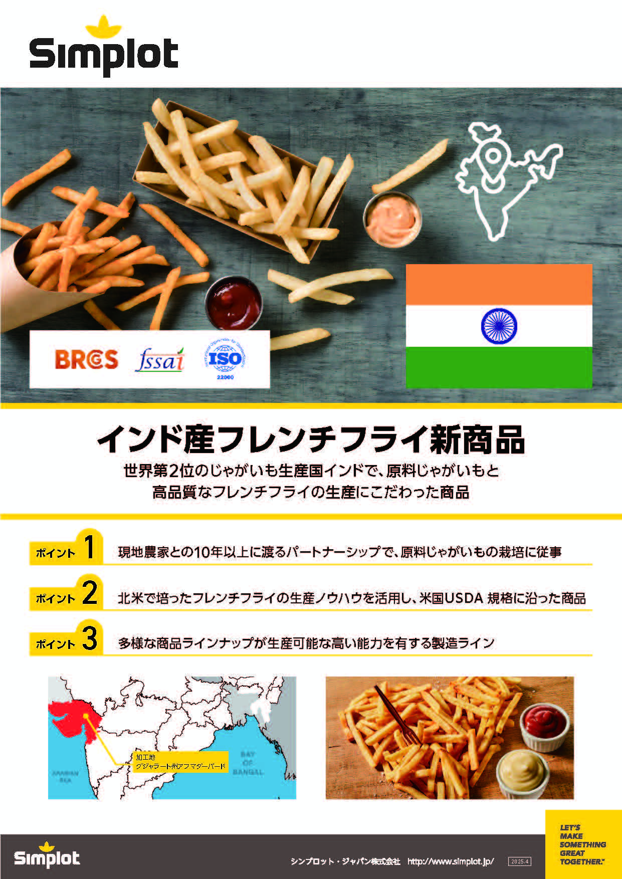 世界第2位のじゃがいも生産国インドで、原料じゃがいもと高品質なフレンチフライの生産にこだわった商品。