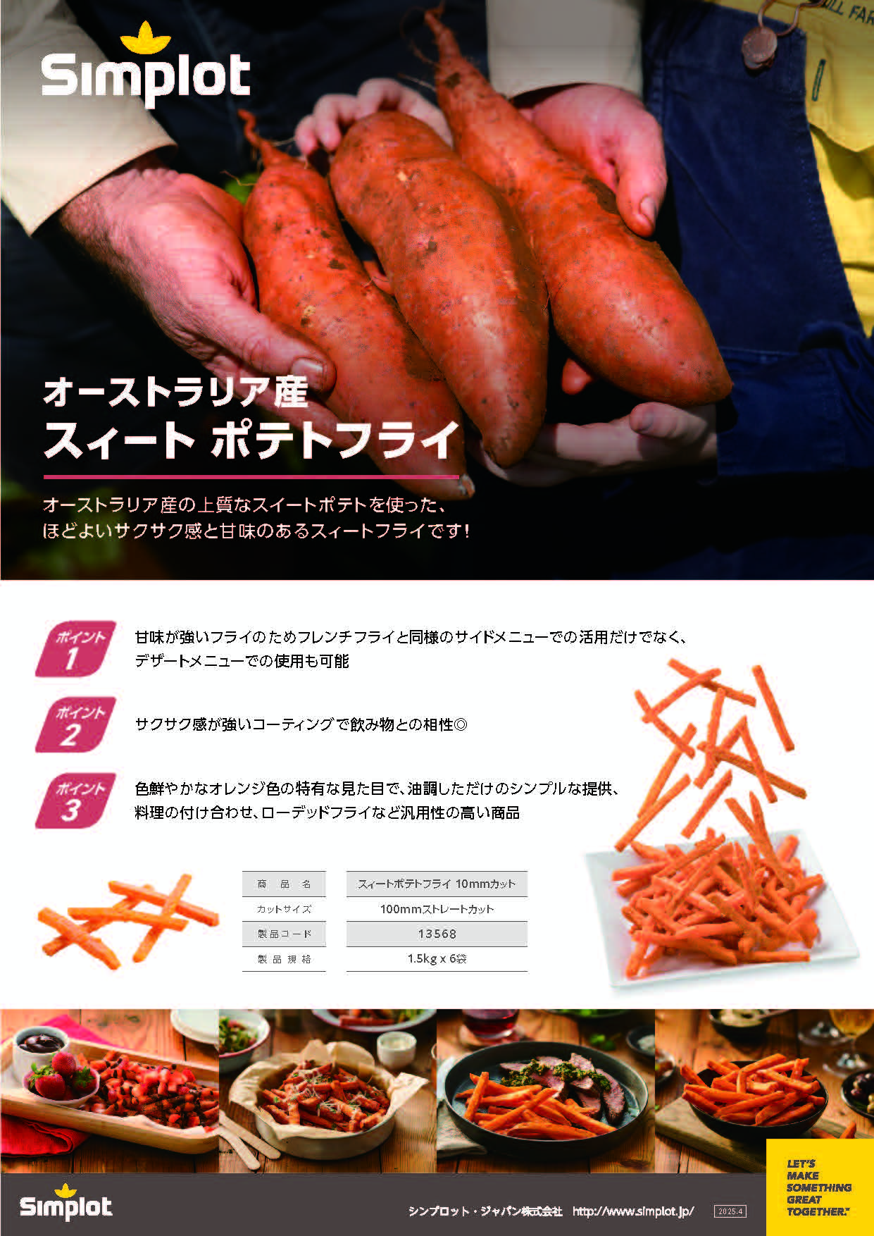 オーストラリア産の上質なスイートポテトを使った、ほどよいサクサク感と甘味のあるスィートフライです!