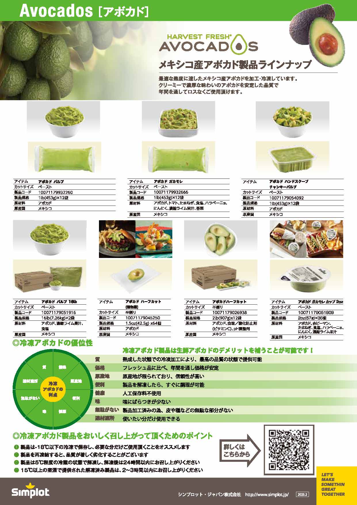 最適な熟度に達したメキシコ産アボカドを加工・冷凍しています。クリーミーで濃厚な味わいのアボカドを安定した品質で年間を通してロスなくご使用頂けます。